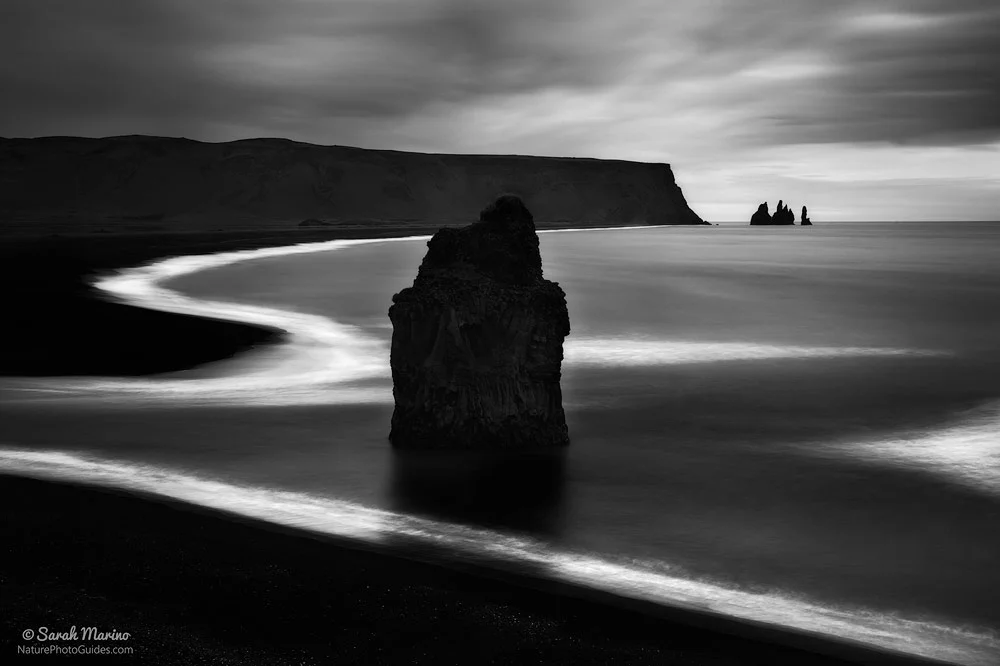 Reynisdrangar, black beach, iceland, black and white photography, landscapes.